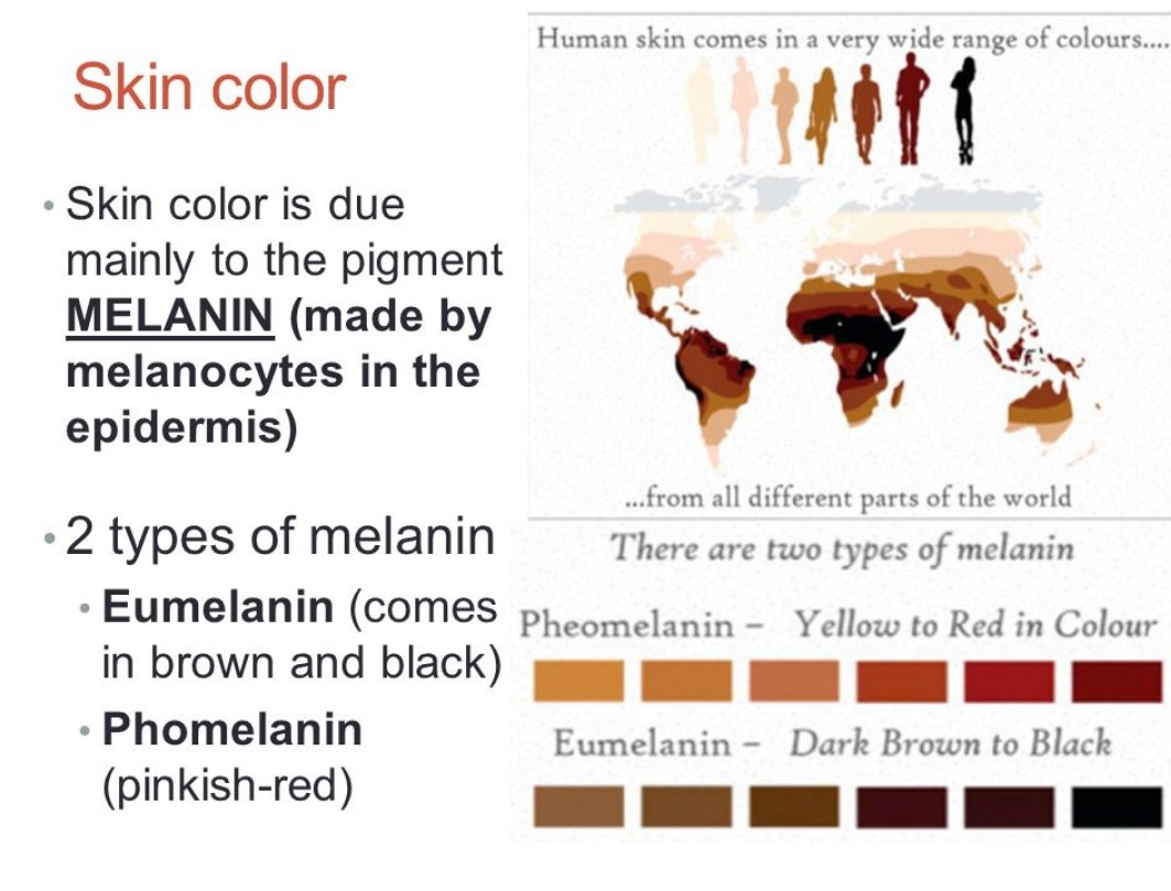 Pigmen-pigmen melanin inilah yang menentukan warna kulit seseorang. Lagi gelap kulit, lagi banyak la melanin dekat kulit dia. Faham kot setakat ni?